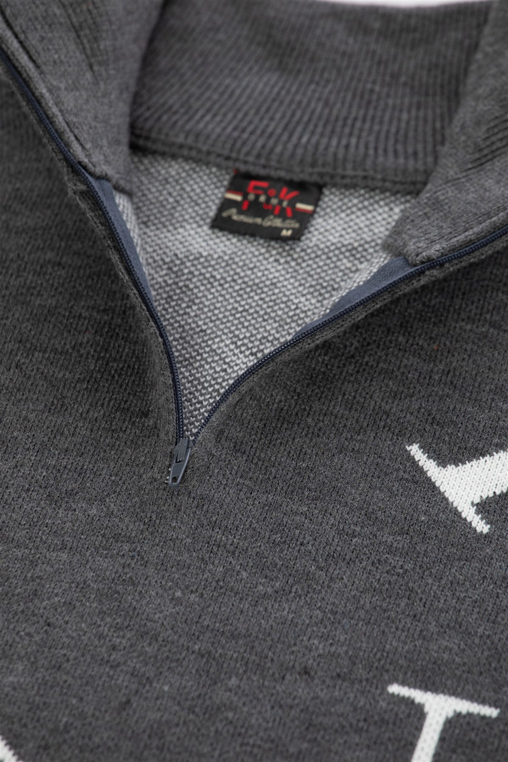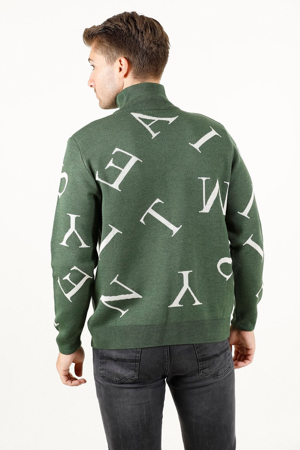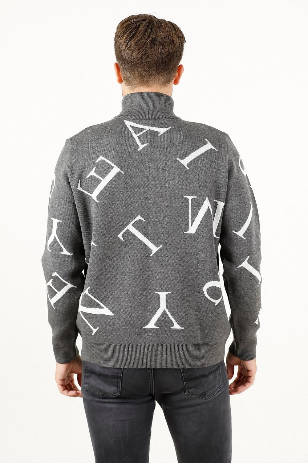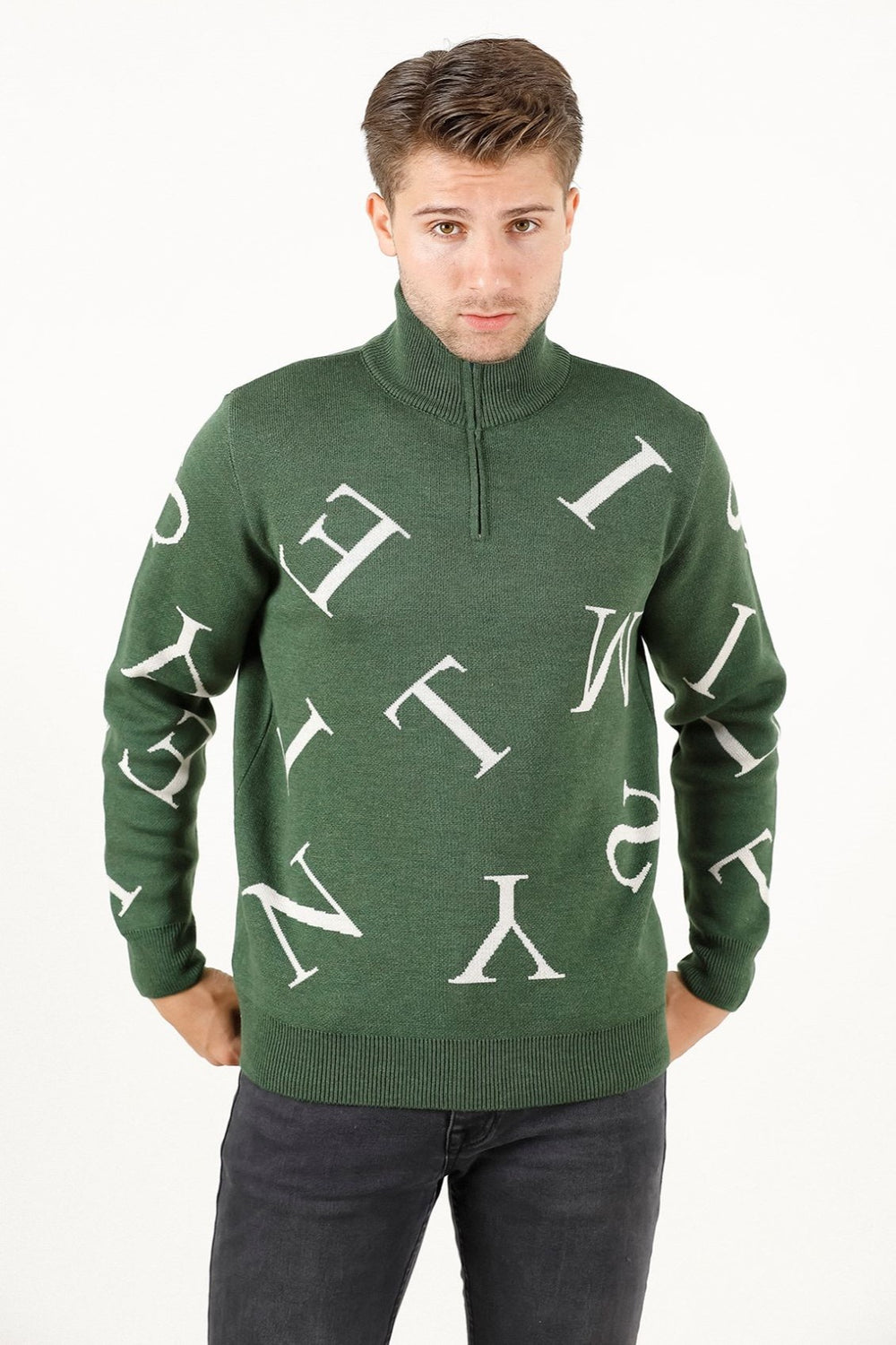 Fermuarlı ve harf detaylı triko kazak, dik yaka tasarımı ve regular fit kalıbıyla modern ve rahat bir stil sunar. Pike jakar örgüsü ve orta kalınlıktaki yapısıyla kış aylarında kullanıma uygundur.