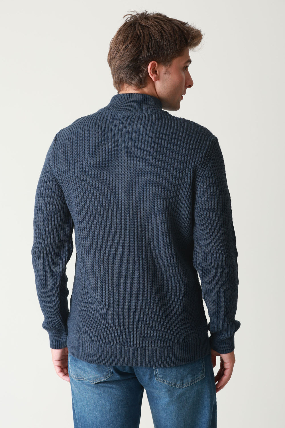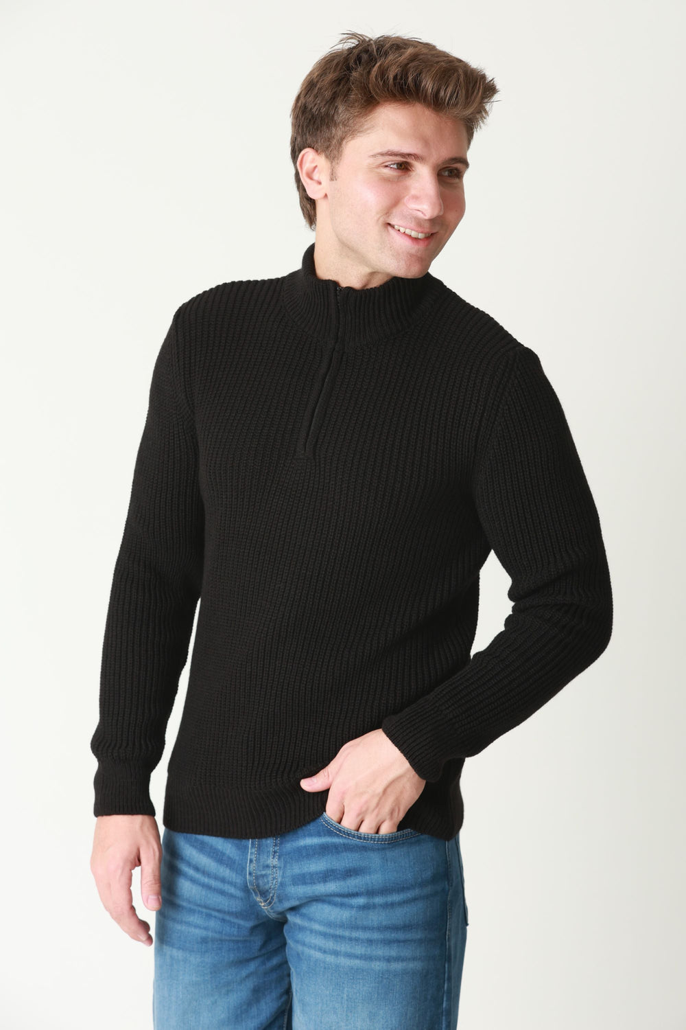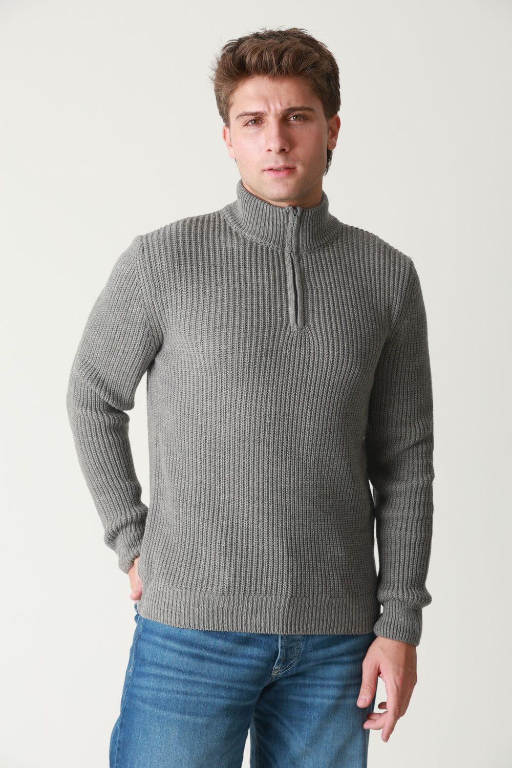 Tek renk selanik örgü triko kazak, dik yaka ve fermuarlı tasarımı ile modern ve rahat bir stil sunar. Kalın selanik örgüsü dokusu sayesinde kış aylarında sıcak ve konforlu bir kullanım sağlar.