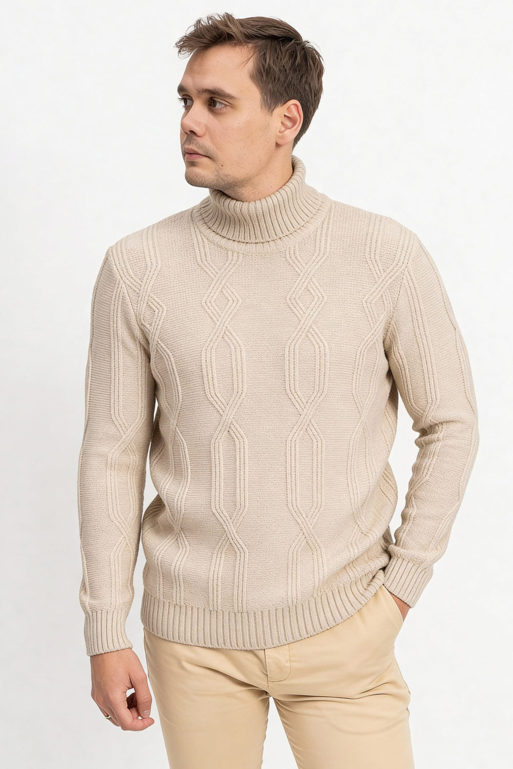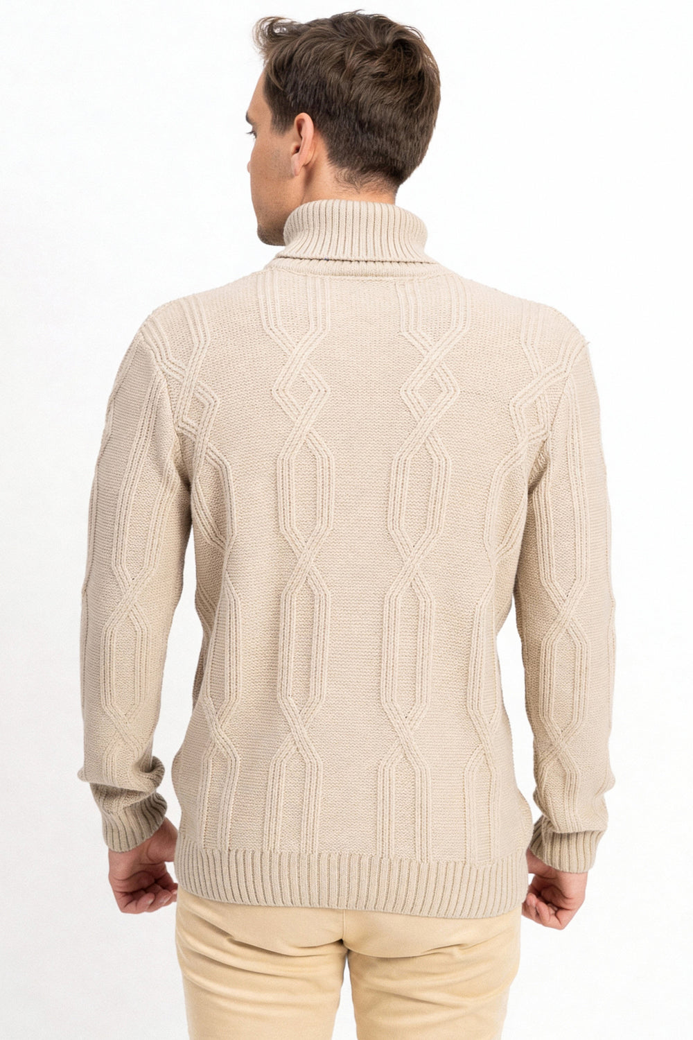 Balıkçı yaka formu ve kendinden desenli dokusuyla öne çıkan bu triko kazak, modern ve zamansız bir görünüm sunar. Orta kalınlıktaki yapısıyla kış aylarında kullanıma uygundur.